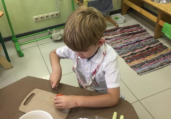 Мы всегда заранее обсуждаем, что будем готовить, чтобы деткам было интересно, а в процессе пошагово рассказываем что и как делать. И знаете, уже на следующем уроке детки без помощи педагогов справляются с действиями, которые они проделывали на предыдущих занятиях кулинарии.
