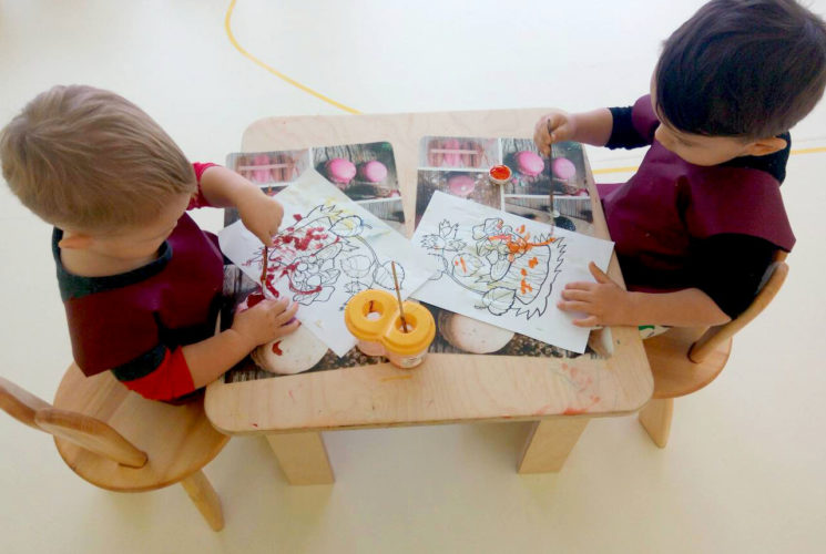 С малышами 2-4 лет мы занимаемся изучением цветов, форм, объемов и композиций. На уроках детки рисуют пальчиковыми красками, карандашами и мелками, лепят из пластилина и соленого тес та, делают аппликации из цветной бумаги и различных материалов.